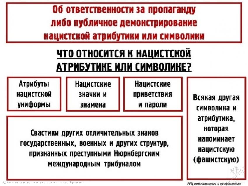 10.04.2026г. Памятка населению «Ответственность за использование нацистской символики» | Администрация муниципального округа город Партизанск Приморского края