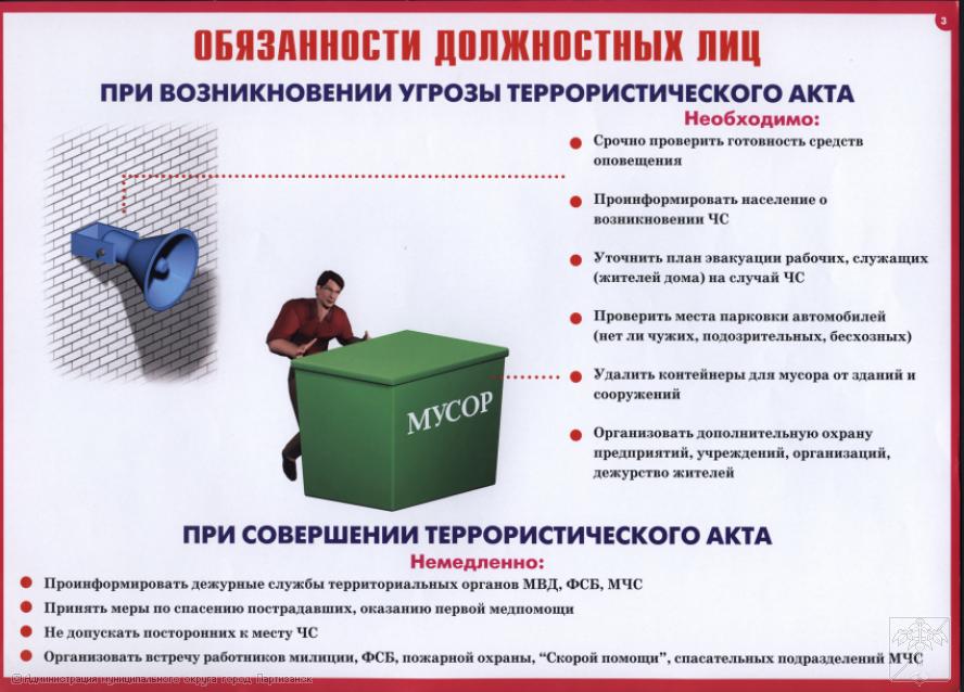 Инструкция собственнику объекта торговли по обеспечению безопасности, антитеррористической защищенности сотрудников и покупателей.24.01.2025г. | Администрация муниципального округа город Партизанск Приморского края