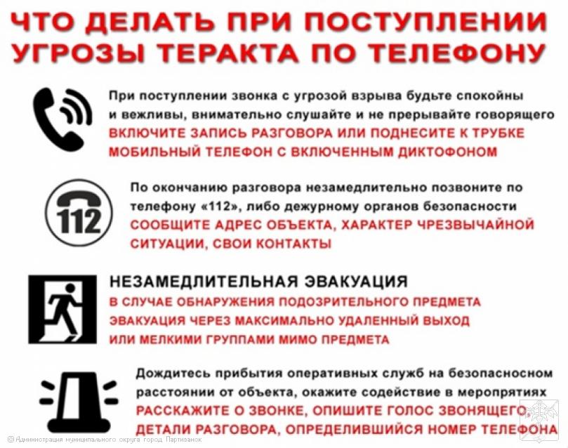 «Порядок действий при поступлении угрозы совершения террористического акта по телефону» 06.03.2025г. | Администрация муниципального округа город Партизанск Приморского края