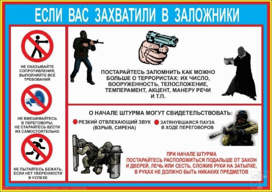 pamyatka.docx Скачать файл. 13.01 КБ pamyatka.docx 168 просмотров Перекрёстные ссылки книги для "Порядок действий при захвате террористами заложников:" 21.02.2024г. ‹ Меры безопасности во время штурма по освобождению заложников. 20.02.2025г. Вверх «Порядок действий при поступлении угрозы совершения террористического акта по телефону» 06.03.2025г. ›