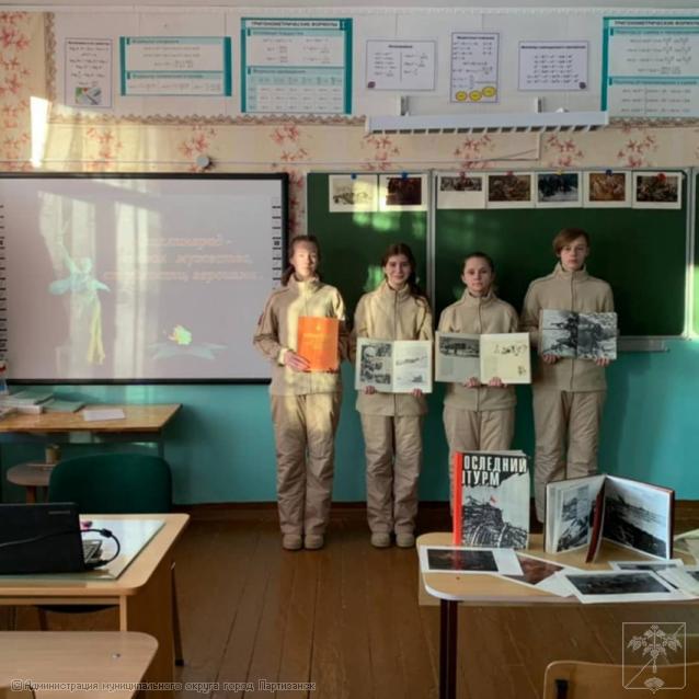 На встрече с учащимися школы N50 руководитель патриотического клуба ДОСААФ Руслан Любченко рассказал детям о победе Красной Армии под Сталинградом и о том, что она вызвала огромный политический и трудовой подъём всего советского народа.
