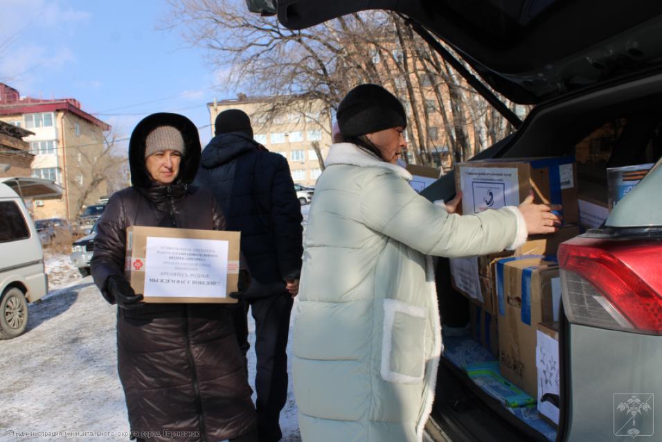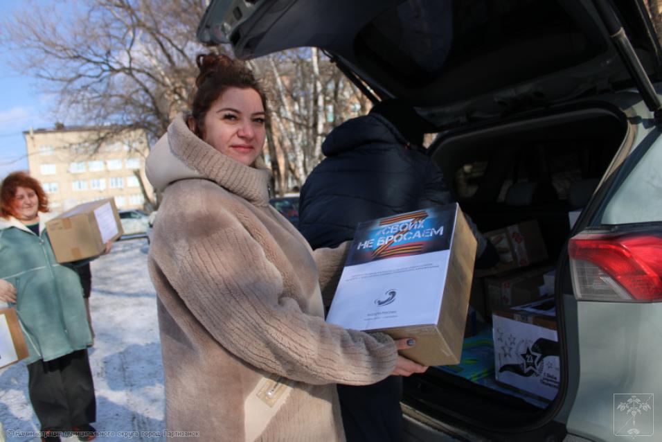 Как всегда, к этому событию готовились тщательно, с большой любовью и уважением к нашим защитникам. В этом важнейшем мероприятии участвовали учреждения образования и культуры городского округа, а также социально-реабилитационный центр. Впереди праздник – День защитника Отечества, поэтому несли не только подарки, сувениры, сладости, витамины, теплые носки и перчатки бойцам, но еще красивыми гвоздиками украшали георгиевские ленточки.
