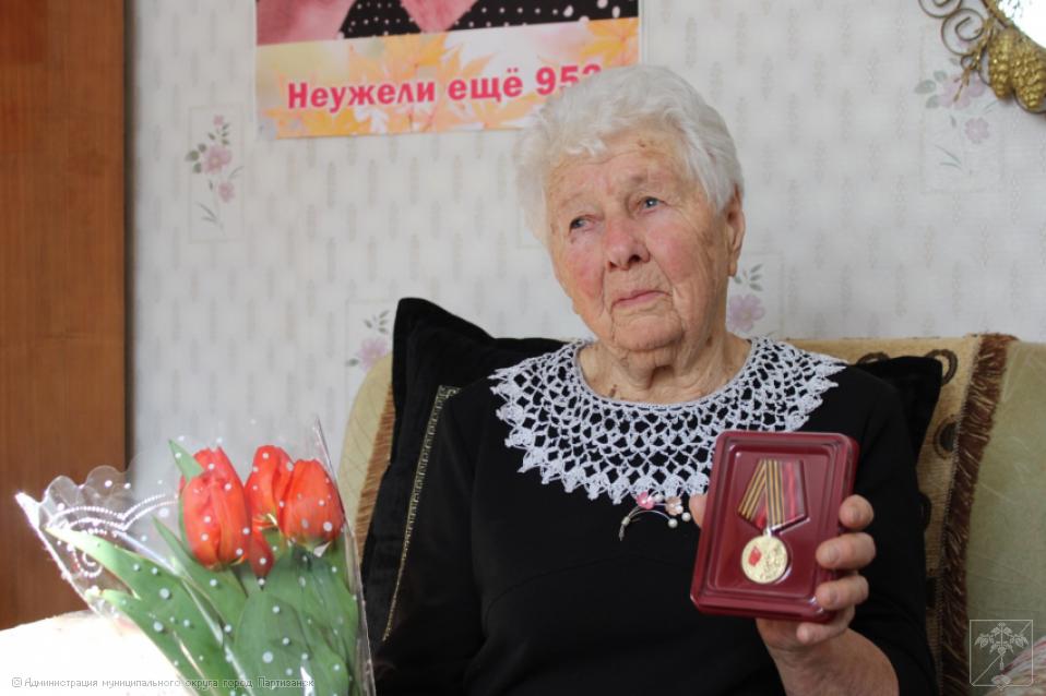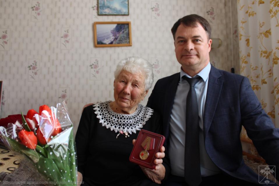 Первая медаль была вручена ветерану труда и активной общественнице Марии Михайловне Дешиной, которой в этом году исполнится 97 лет!