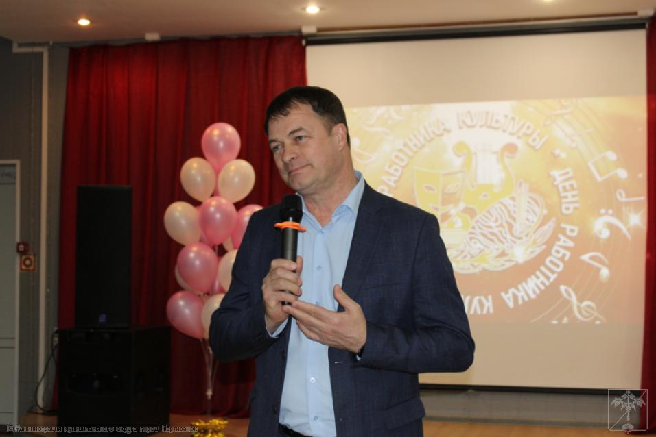 Теплые слова поздравлений адресовал  сегодня работникам культуры глава муниципального округа город Партизанск Олег Бондарев, отметивший огромный вклад всех собравшихся в зале в развитие культуры.