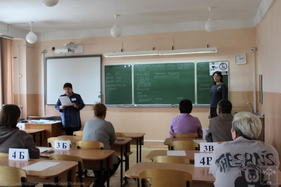 В акции приняли участие глава муниципального округа город Партизанск Олег Бондарев, заместитель главы-начальник управления образования Алина Федорова, родители и представители общественности, которым сегодня предстояло сдавать сложнейший предмет – математику.