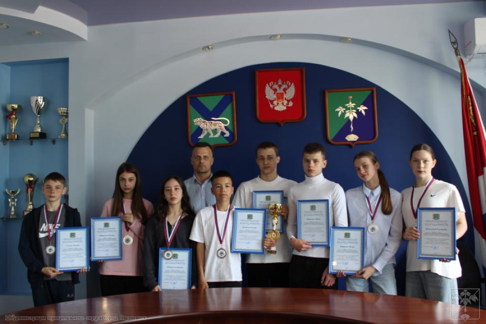 Награждение команды Партизанска, занявшей второе место в краевом фестивале "Готов к труду и обороне!", состоялось в городской администрации.