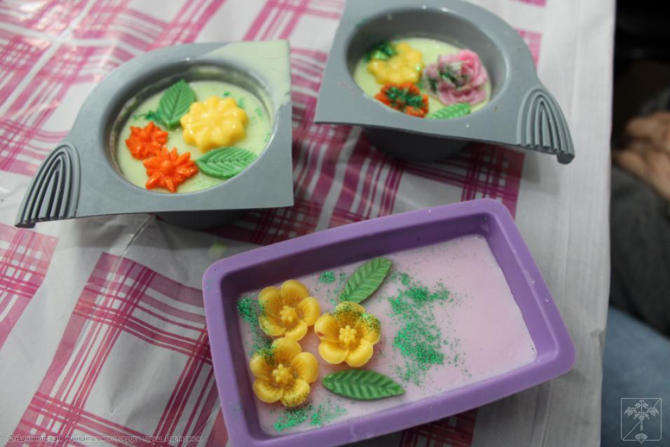 Во время этого необычного урока общественниц учили кропотливому, но очень красивому искусству делать душистое мыло. А провела его жительница нашего города Евгения Стафеева.