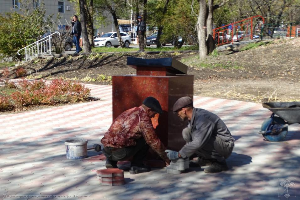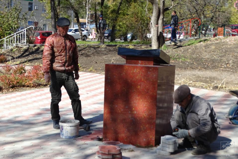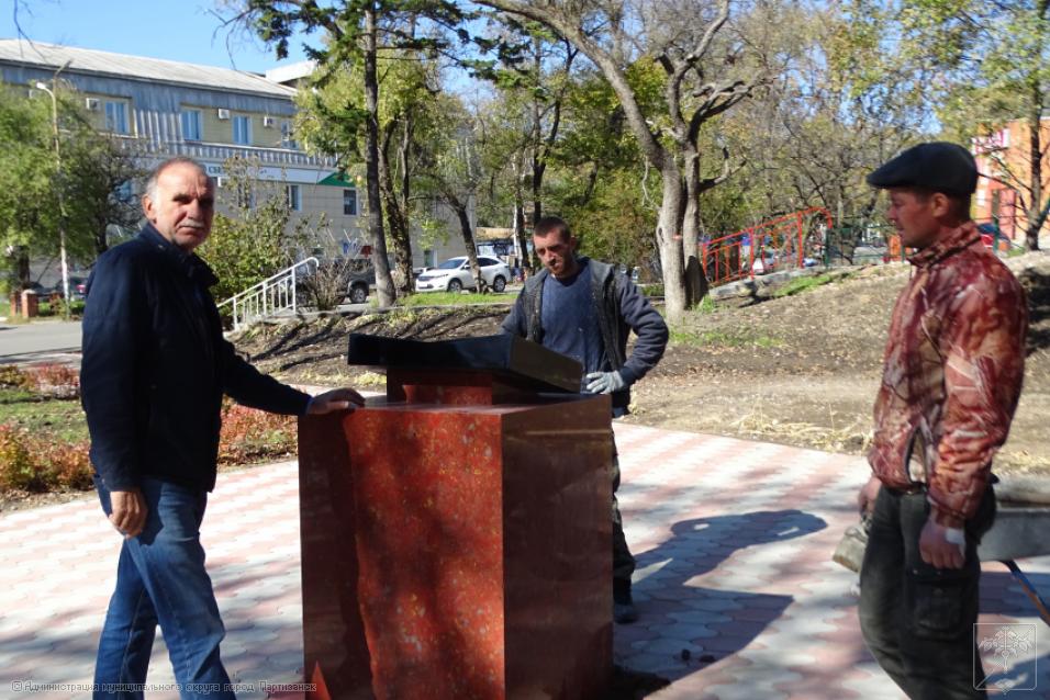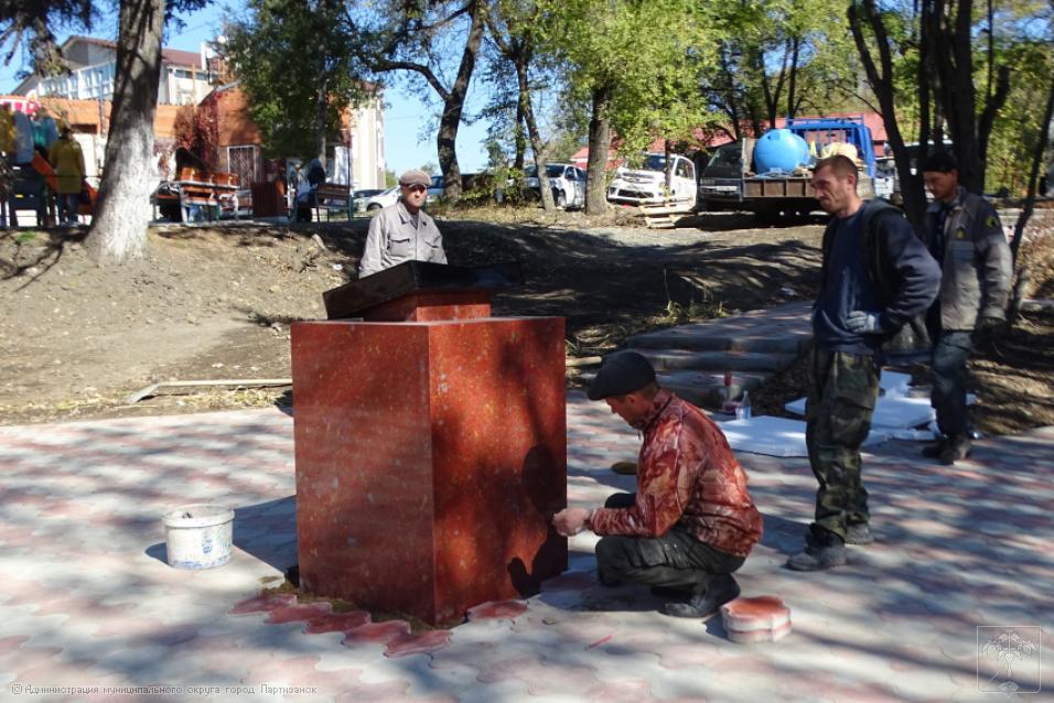 Как отмечают в подрядной организации, они побеспокоились и о том, чтобы данный объект был прочным и не шатался. Последнее особенно важно! А для этого тумбу под книгу сделали из цельных листов гранита, внутри установили каркас и все сооружение будет прочно вмонтировано в бетонное основание.